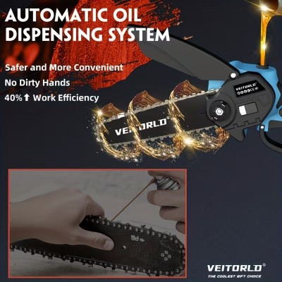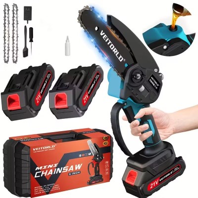 покрытие > бытовая техника > Беспроводная мини-бензопила 6 дюймов | ручная пила с аккумулятором 21 В с двумя перезаряжаемыми батареями | легкая электрическая бензопила для обрезки деревьев, распиловки древесины и садовых работ | идеальна для уличных проектов