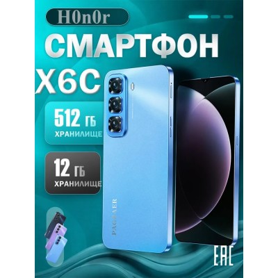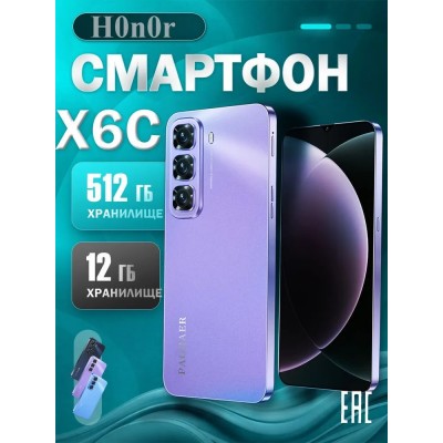Смартфон H0n0r X6C русская версия, сеть 4g, большой 6.5-дюймовый HD-экран, противоударная и водонепроницаемая защита, мощные игровые функции, гибкие возможности фотосъемки, длительное время автономной работы, отличный подарок, сенсорный телефон,Spark,M6,Ростест (EAC) EU 12/512 ГБ, фиолетовый