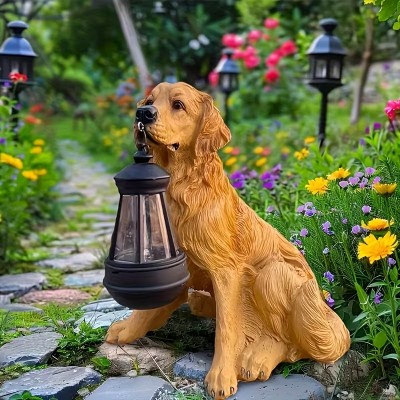 покрытие > Статуэтка золотистого ретривера на солнечных батареях со светодиодной подсветкой - идеальное сочетание очарования и функциональности, можно использовать как украшение для сада и газона, подарок для любителей домашних животных, прочный декор.Водонепроницаемые уличные светильники на солнечных батареях.Рождественские украшения