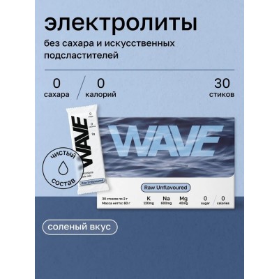 покрытие > Уход за кожей > Комплекс электролитов "WAVE Raw Unflavoured" с соленым вкусом, 30 стиков