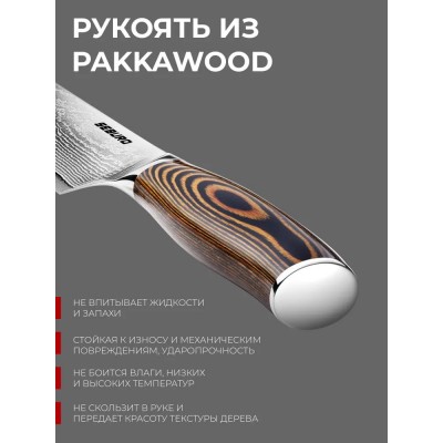 покрытие > Набор кухонных ножей из дамасской стали, Seburo SUBAJA Damascus, Поварская тройка - профессиональные японские ножи