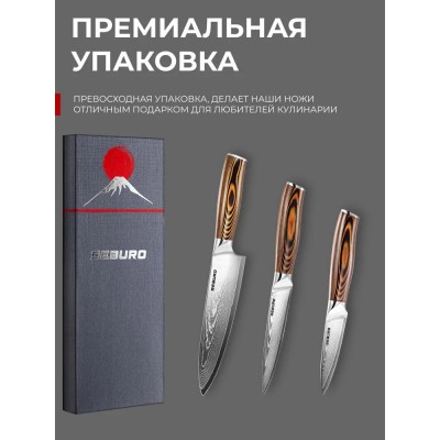 Набор кухонных ножей из дамасской стали, Seburo SUBAJA Damascus, Поварская тройка - профессиональные японские ножи