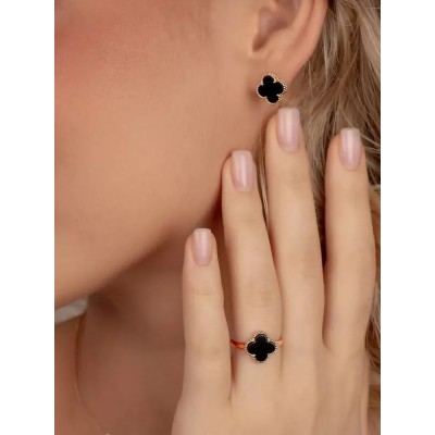 покрытие > Одежда и аксессуары > другие > Серьги золотые 585 пробы с ониксом в форме клевера, KARATOV