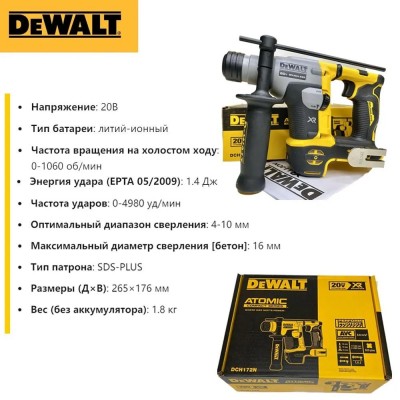 покрытие > бытовая техника > Перфоратор dewalt DCH172N 18В, SDS-Plus, мощный, компактный (без АКБ и ЗУ)